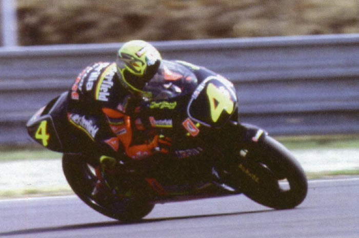 Что и говорить, Фортуна, раньше не слишком часто улыбавшаяся "прекрасной итальянке", на сей раз откровенно благоволила ей. "Априлии" в начале сезона повезло — зимой упал и получил тяжелые травмы Робертс-младший, вернувшийся в строй лишь к Гран-при Чехии. Не успев принять участие в первой гонке года, выбыл из борьбы за титул и Тецуе Харада — в квалификации он неудачно упал и пропустил два Гран-при, и, что того хуже, прошлогодней чемпионской формы ни сам японец, ни его "Ямаха" так и не достигли.