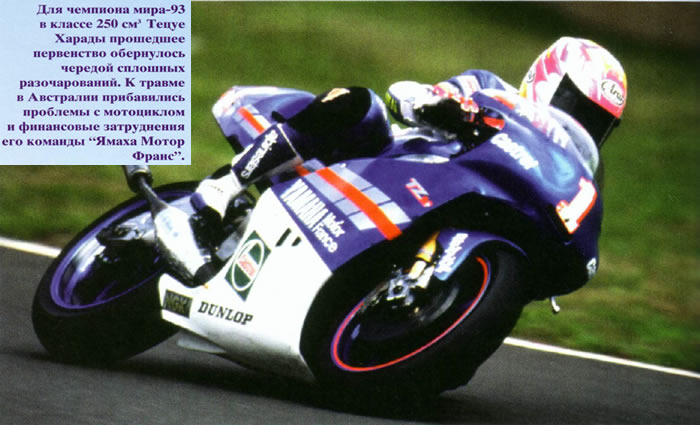 Так оно и вышло. После позорной пощечины в 1992-м японцы на следующий год легко разделались с "Априлией". Расслабившиеся итальянцы, традиционно начинавшие сезон с долгой раскачки, были мигом поставлены на место. И лишь под занавес сезона-93 сумели слегка подсластить пилюлю. Неудивительно, что прогнозы на 1994 год выглядели для "Априлии" немногим более радостными.